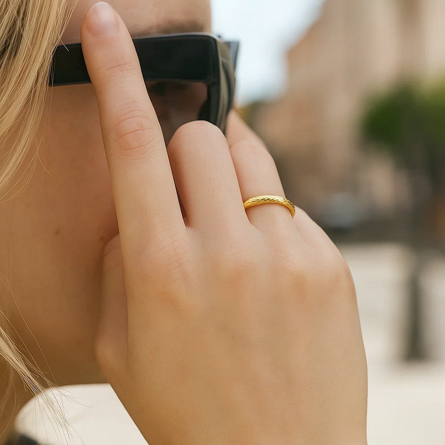 Subtle texture adds drama to a classic 2.5mm-wide 14k yellow gold wedding band. Ring size 7 to 10.